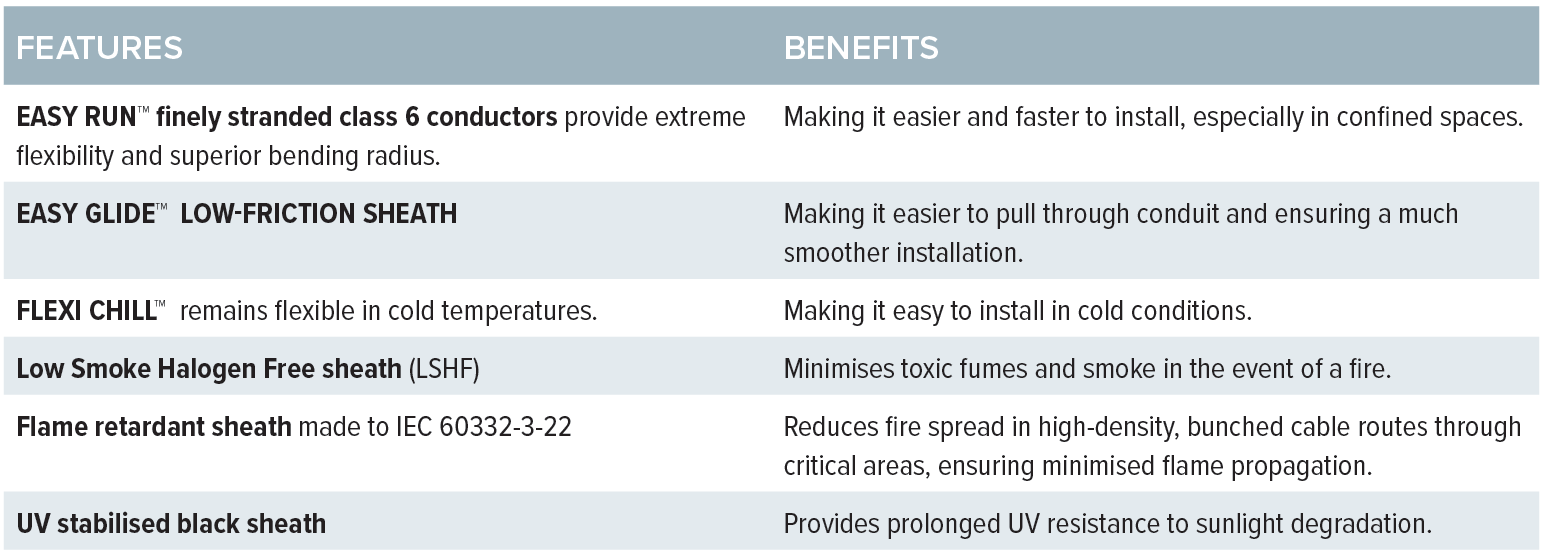 Relevant Standards IEC 60332-1, AS/NZS 5000.1, AS/NZS 1125, AS/NZS 3808, AS/NZS 3008, IEC 61034-2, IEC 60754-1, ROHS Compliant.